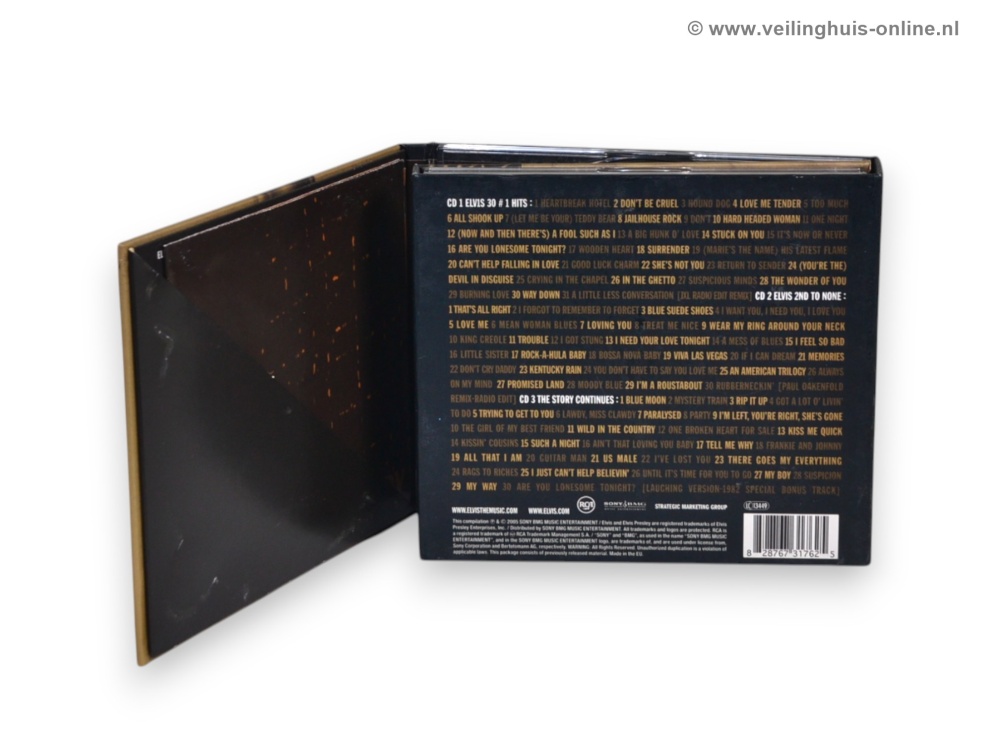 | Bijzonderheden | Tracklist 1 1. Elvis Presley - Heartbreak Hotel 2. Elvis Presley - Don't Be Cruel 3. Elvis Presley - Hound Dog 4. Elvis Presley - Love Me Tender 5. Elvis Presley - Too Much 6. Elvis Presley - All Shook Up 7. Elvis Presley - (Let Me Be Your) Teddy Bear 8. Elvis Presley - Jailhouse Rock 9. Elvis Presley - Don't 10. Elvis Presley - Hard Headed Woman 11. Elvis Presley - One Night 12. Elvis Presley - (Now and Then There's) a Fool Such As I 13. Elvis Presley - A Big Hunk O' Love 14. Elvis Presley - Stuck On You 15. Elvis Presley - It's Now Or Never 16. Elvis Presley - Are You Lonesome Tonight? 17. Elvis Presley - Wooden Heart 18. Elvis Presley - Surrender 19. Elvis Presley - (Marie's the Name) His Latest Flame 20. Elvis Presley - Can't Help Falling in Love 21. Elvis Presley - Good Luck Charm 22. Elvis Presley - She's Not You 23. Elvis Presley - Return to Sender 24. Elvis Presley - (You're The) Devil in Disguise 25. Elvis Presley - Crying in the Chapel 26. Elvis Presley - In the Ghetto 27. Elvis Presley - Suspicious Minds 28. Elvis Presley - The Wonder of You 29. Elvis Presley - Burning Love 30. Elvis Presley - Way Down 31. Elvis Presley - A Little Less Conversation (JXL Radio Edit Remix) Tracklist 2 1. Elvis Presley - That's All Right 2. Elvis Presley - I Forgot to Remember to Forget 3. Elvis Presley - Blue Suede Shoes 4. Elvis Presley - I Want You, I Need You, I Love You 5. Elvis Presley - Love Me 6. Elvis Presley - Mean Woman Blues 7. Elvis Presley - Loving You 8. Elvis Presley - Treat Me Nice 9. Elvis Presley - Wear My Ring Around Your Neck 10. Elvis Presley - King Creole 11. Elvis Presley - Trouble 12. Elvis Presley - I Got Stung 13. Elvis Presley - I Need Your Love Tonight 14. Elvis Presley - A Mess of Blues 15. Elvis Presley - I Feel So Bad 16. Elvis Presley - Little Sister 17. Elvis Presley - Rock-a-hula Baby 18. Elvis Presley - Bossa Nova Baby 19. Elvis Presley - Viva Las Vegas 20. Elvis Presley - If I Can Dream 21. Elvis Presley - Memories 22. Elvis Presley - Don't Cry Daddy 23. Elvis Presley - Kentucky Rain 24. Elvis Presley - You Don't Have to Say You Love Me 25. Elvis Presley - An American Trilogy 26. Elvis Presley - Always On My Mind 27. Elvis Presley - Promised Land 28. Elvis Presley - Moody Blue 29. Elvis Presley - I'm a Roustabout 30. Elvis Presley - Rubberneckin' (Paul Oakenfold Remix - Radio Edit) (Bonus Track) Tracklist 3 1. Elvis Presley - Blue Moon 2. Elvis Presley - Mystery Train 3. Elvis Presley - Rip It Up! 4. Elvis Presley - Got A Lot O Livin' To Do 5. Elvis Presley - Trying to Get to You 6. Elvis Presley - Lawdy, Miss Clawdy 7. Elvis Presley - Paralysed 8. Elvis Presley - Party 9. Elvis Presley - I'm Left, You're Right, She's Gone 10. Elvis Presley - The Girl of My Best Friend 11. Elvis Presley - Wild in the Country 12. Elvis Presley - One Broken Heart for Sale 13. Elvis Presley - Kiss Me Quick 14. Elvis Presley - Kissin' Cousins 15. Elvis Presley - Such a Night 16. Elvis Presley - Ain't That Loving You Baby 17. Elvis Presley - Tell Me Why 18. Elvis Presley - Frankie and Johnny 19. Elvis Presley - All That I Am 20. Elvis Presley - Guitar Man 21. Elvis Presley - US Male 22. Elvis Presley - I've Lost You 23. Elvis Presley - There Goes My Everything 24. Elvis Presley - Rags to Riches 25. Elvis Presley - I Just Can't Help Believin' 26. Elvis Presley - Until It's Time for You to Go 27. Elvis Presley - My Boy 28. Elvis Presley - Suspicion 29. Elvis Presley - My Way 30. Elvis Presley - Are You Lonesome Tonight? (Laughing Version) |
