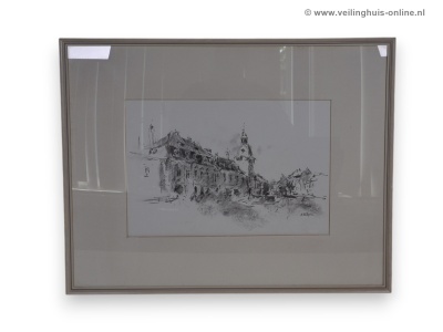 Houtskool tekening - Straatscène