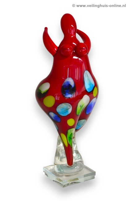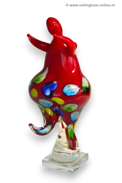 | Bijzonderheden | Handgemaakt van hoogwaardig Murano stijl glas met levendige kleuren. Artistiek ontwerp van een vrouwelijke danseres in sierlijke houding. Prachtige eyecatcher voor woonkamer, vitrine of kunstcollectie Geschatte marktwaarde € 95,- Richtprijs minimaal bedrag ligt tussen € 12,- en € 23,- |