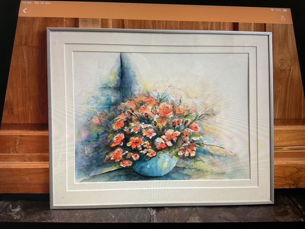 | Bijzonderheden | erg mooie aquarel, erg mooi ingelijst met een dubbele passe-partout in een professionele Wissellijst. |