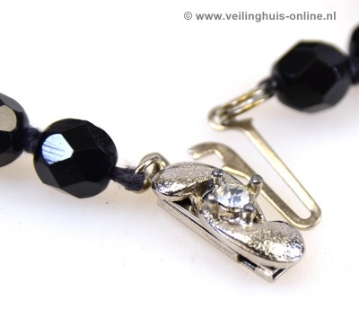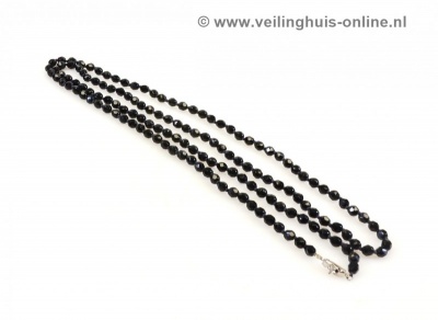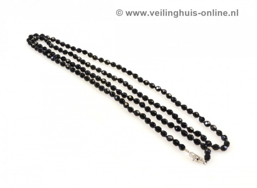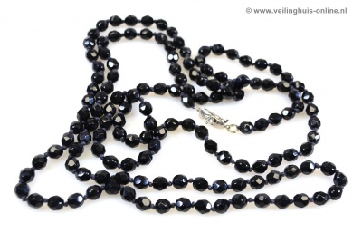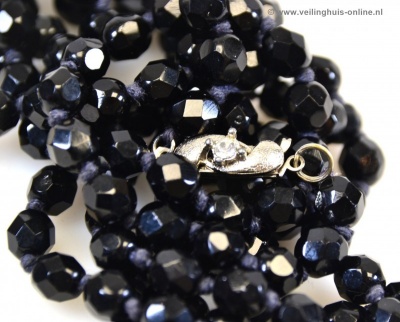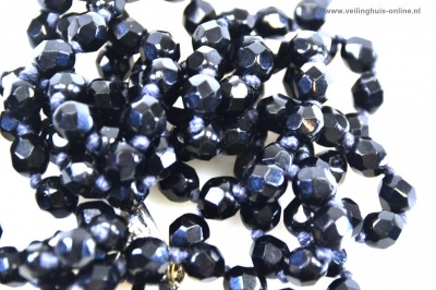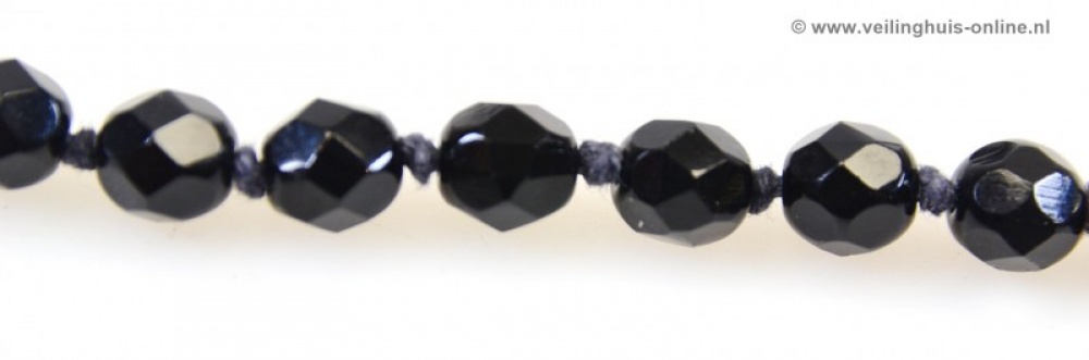 | Bijzonderheden | Zuiver geknoopte gitten Collier met facet geslepen kralen.