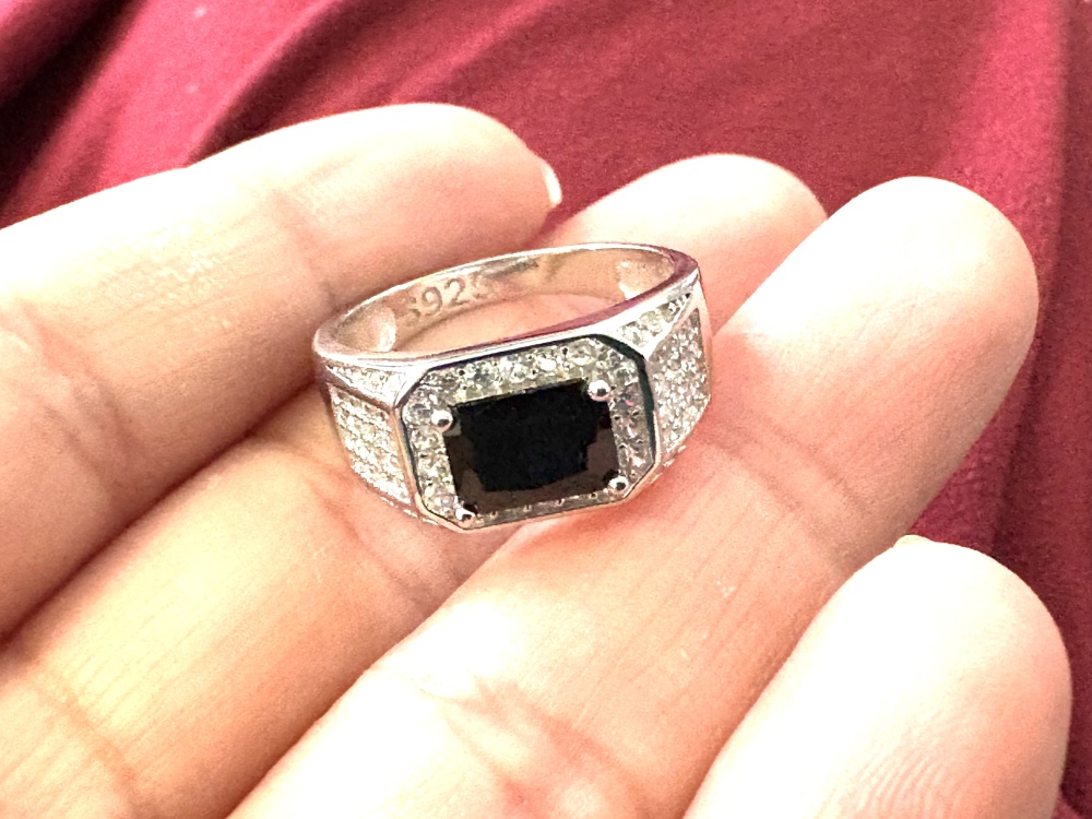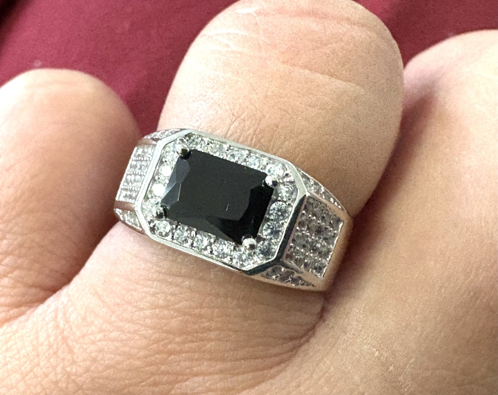 | Bijzonderheden | Heren zilveren 925 ring met zwarte steen Ring maat 19 |