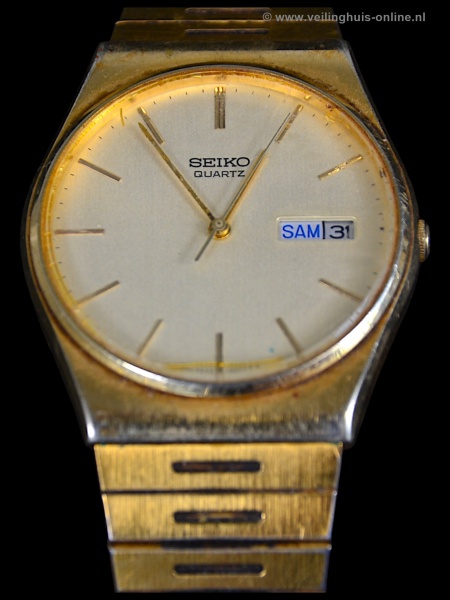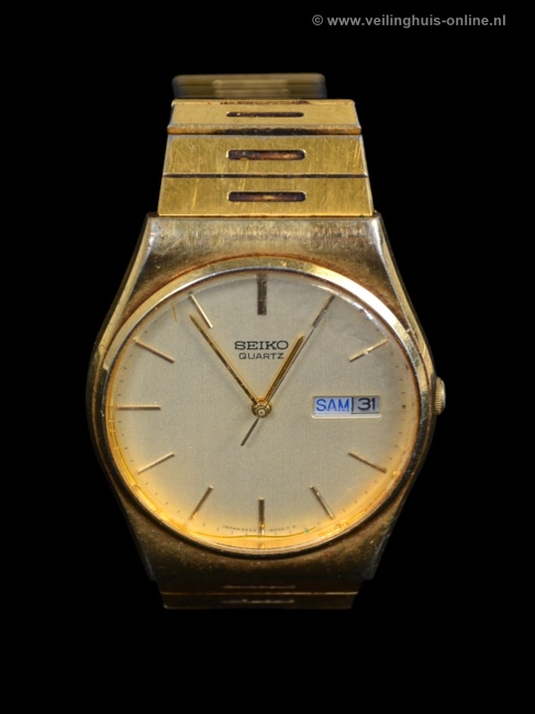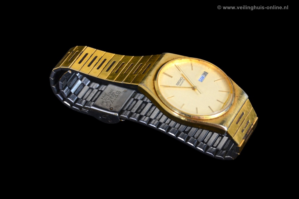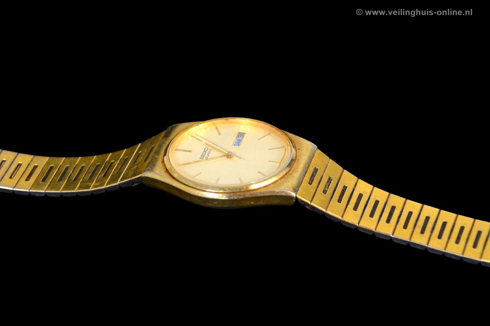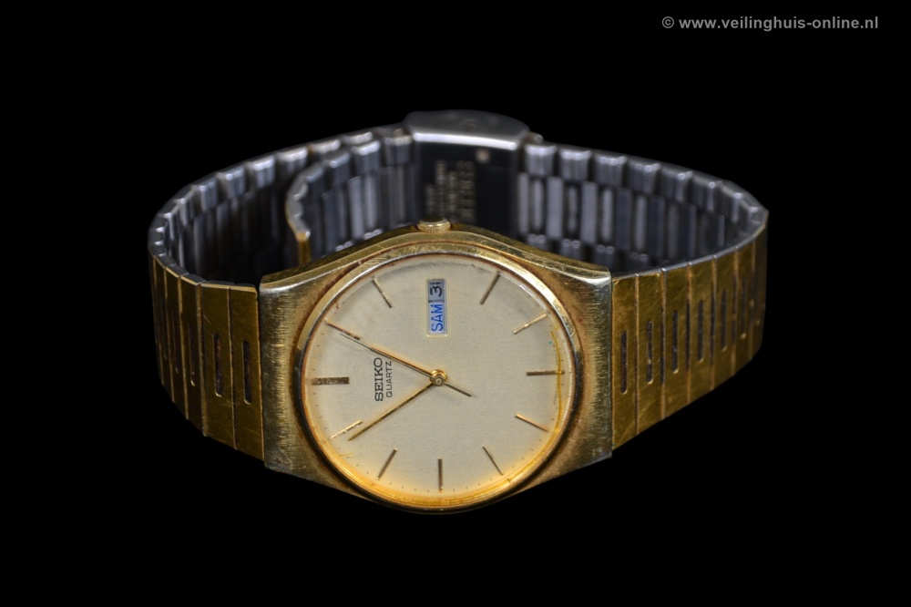 | Bijzonderheden | Vintage Seike Quartz heren horloge met goudkleurige verstelbare stalen horlogeband Met datum aanduiding |