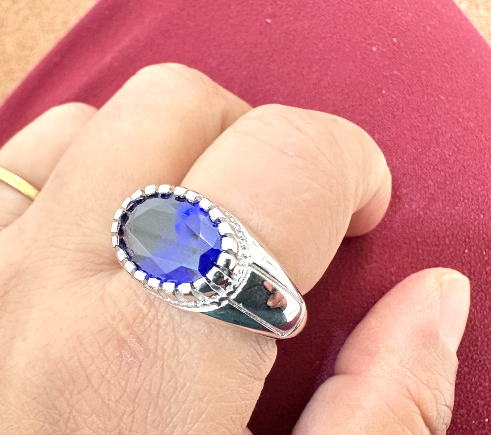 | Bijzonderheden | Massief zilveren heren ring sterling silver 925 ring voor de mannen met klasse! Materiaal : sterling zilver Keurmerk : 925 London topaas 12x14mm Gewicht : +-9,4g Maat : 22