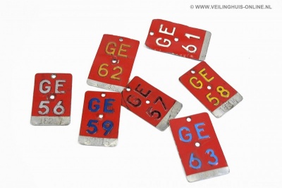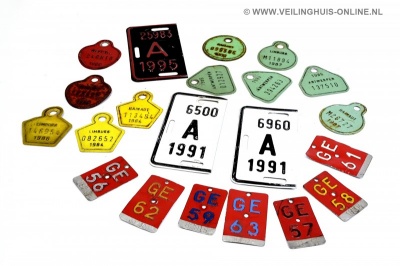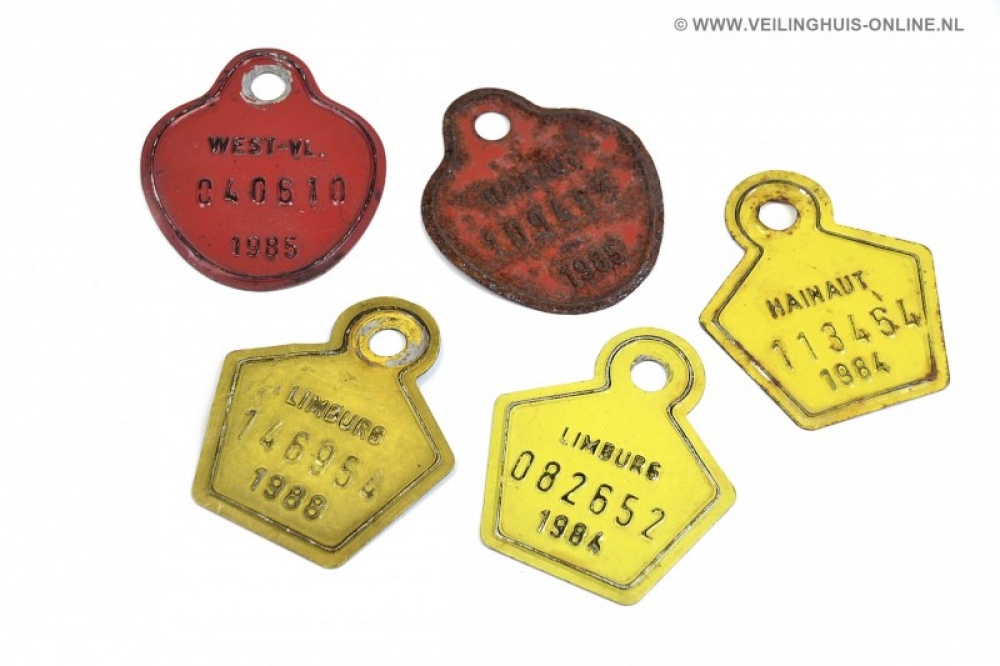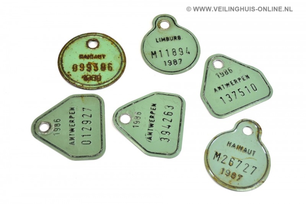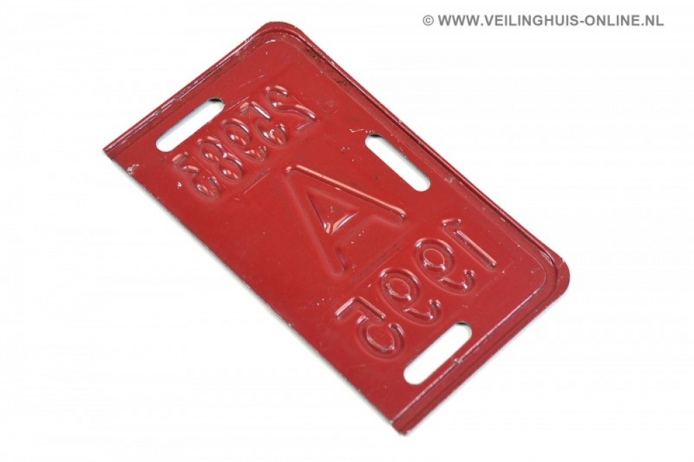 | Bijzonderheden | Deze fietsplaatjes werden gebruikt als bewijs dat de rijwielbelasting was betaald Stoer voor aan een kastsleutel bij een industriële interieur |