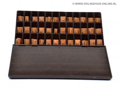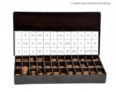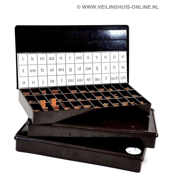 | Bijzonderheden | 3 gevulde vintage letterbakken van het merk LCGM LCGM is het logo van Louis Carel Gerard Malmberg, oprichter van de uitgeverij Malmberg. De producten en diensten van Malmberg staan ten dienste van de ontwikkeling van kinderen en studenten.