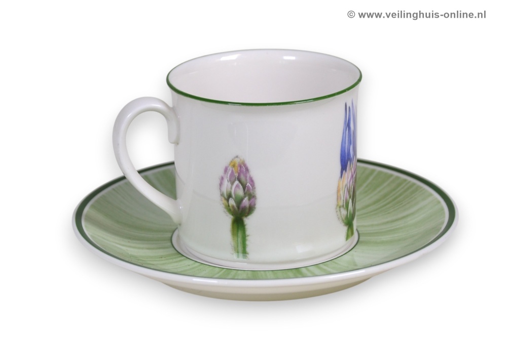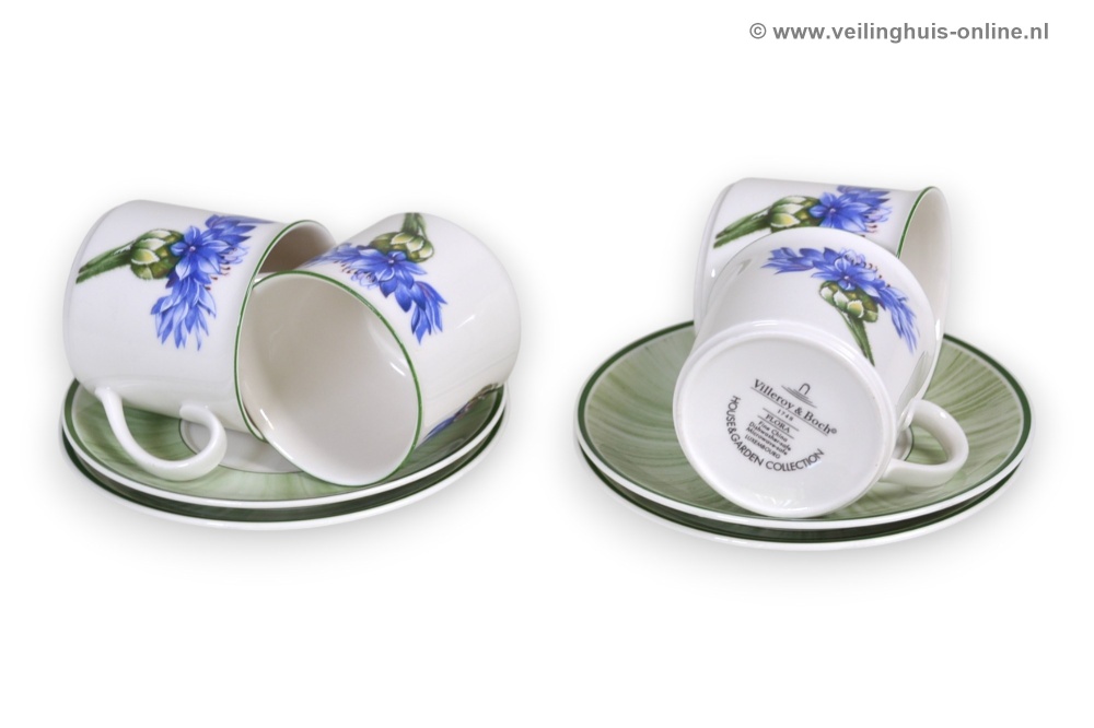 | Bijzonderheden | 11 Serviesonderdelen van het Flora servies van Villeroy & Boch 9 Kop & schotels 1 Suikerpot met deksel 1 Melkkannetje Afmetingen: Kopje: Ø 7,5 Hoogte.7 cm Schotel: Ø 14,5 cm Melkkannetje 0,2 Liter Suikerpot: Ø 10 cm - Hoogte 8 cm Geschatte marktwaarde € 165,- Richtprijs minimaal bedrag ligt tussen € 25,- en € 44,-