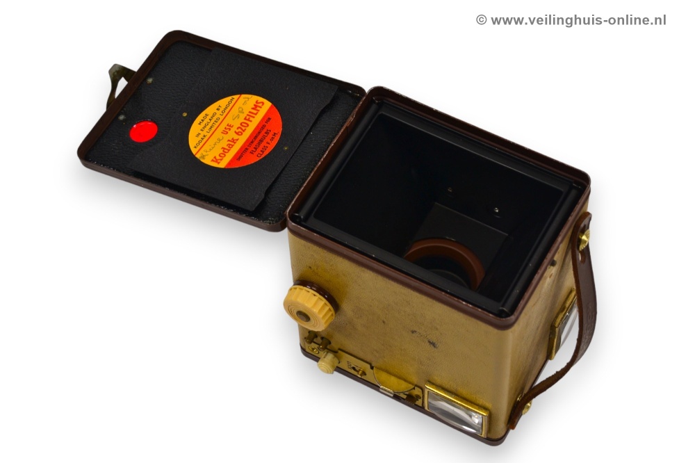 | Bijzonderheden | Informatie: Deze camera heeft een relatief korte productie gehad. De Six-20 Brownie Model F is cosmetisch geëvolueerd van de Six-20 Brownie Model E Camera. Dit is een kwalitatief hoogstaand werkpaard van een camera uit een geweldige serie die gedurende 20 jaar in het Verenigd Koninkrijk werd geproduceerd, te beginnen in 1937. Deze boxcamera's zijn gemaakt om lang mee te gaan met behulp van zwaar plaatstaal. Incl. origineel opbergetui (slechte staat) leer gebroken |