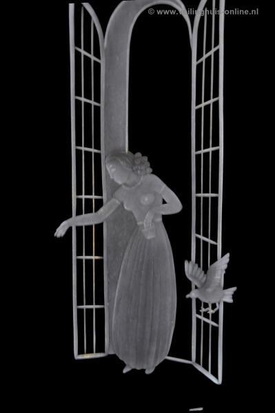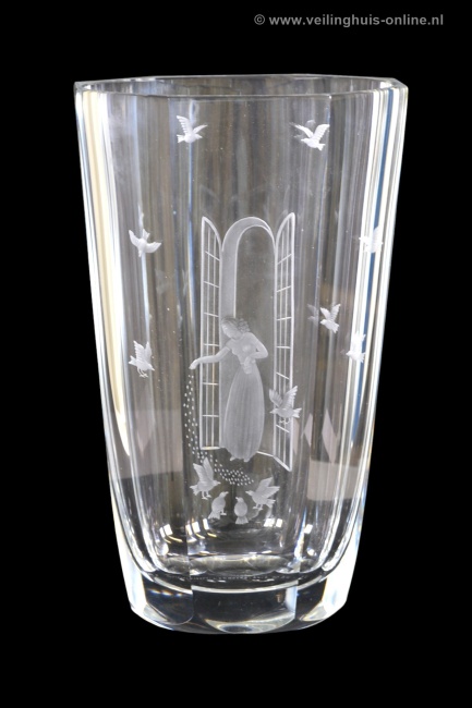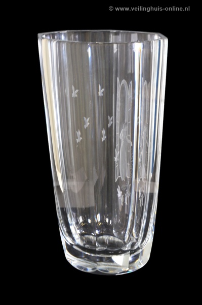 | Bijzonderheden | Deze prachtige Zweedse dikwandige helder kristallen vaas heeft een prachtig gegraveerd motief van een vrouw omringd door vogels. Ontworpen door Nils Landberg (1907-1991) voor Orrefors in de jaren 1930 of 1940, is het een prachtig voorbeeld van Scandinavisch art-decoglasdesign. Geschatte marktwaarde € 70,- Richtprijs minimaal bedrag ligt tussen € 11,- en € 19,- |