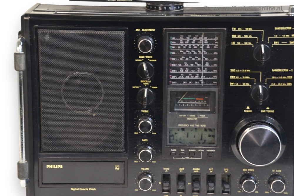 | Bijzonderheden | De Philips AL990 is een draagbare wereldontvanger die in 1982 in Nederland is geproduceerd. Hij stond bekend om zijn vermogen om een breed scala aan frequenties te ontvangen, waardoor hij populair was onder liefhebbers van kortegolfradio. Specificaties en functies Frequentiebanden: De AL990 kon meerdere frequentiebanden ontvangen, waaronder: Lange golf (LW) Middengolf (MW) Kortegolf (SW), met meerdere subbanden (SW1 t/m SW5) FM Antennes: Om de ontvangst van verschillende frequenties te optimaliseren, was de ontvanger uitgerust met meerdere antennes: Een uitschuifbare sprietantenne Een opvouwbare, draaibare ferrietantenne voor LW en MW Fijn afstemming (BFO): De AL990 beschikt over een BFO-functie (Beat Frequency Oscillator) om SSB-signalen (Single Sideband) te kunnen ontvangen, wat belangrijk is voor het beluisteren van amateurradio en andere speciale uitzendingen. Het apparaat heeft een inklapbare draagbeugel, een roterende antenne, een analoog en digitaal display met frequentie-aanduiding, een ingebouwde quartzklok en een weksysteem met twee alarmfuncties. Bouwjaar: De ontvanger werd in 1982 op de markt gebracht. Geschatte marktwaarde € 380,- Richtprijs minimaal bedrag ligt tussen € 69,- en € 88,-