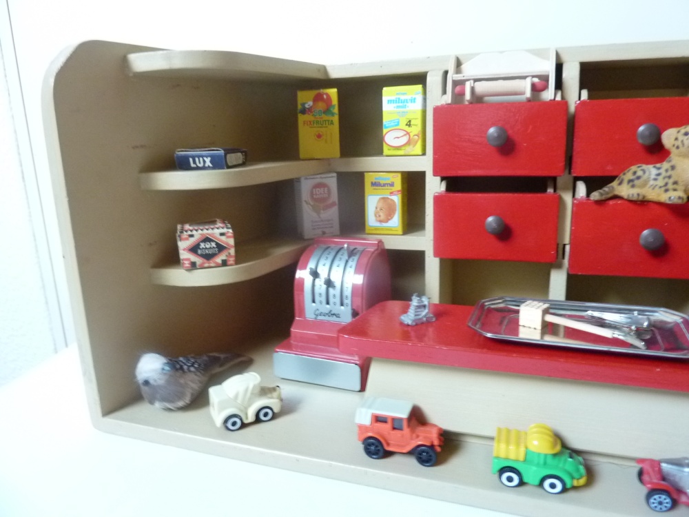 | Bijzonderheden | Mooi speelgoed winkeltje met veel originele verkoop spulletjes in goede staat. |
