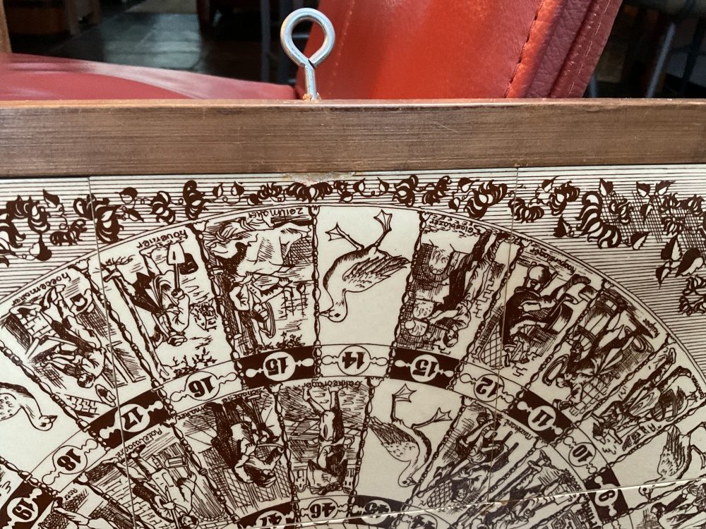 | Bijzonderheden | Tableau van 12 tegels. Verlijmd op spaanplaat. |