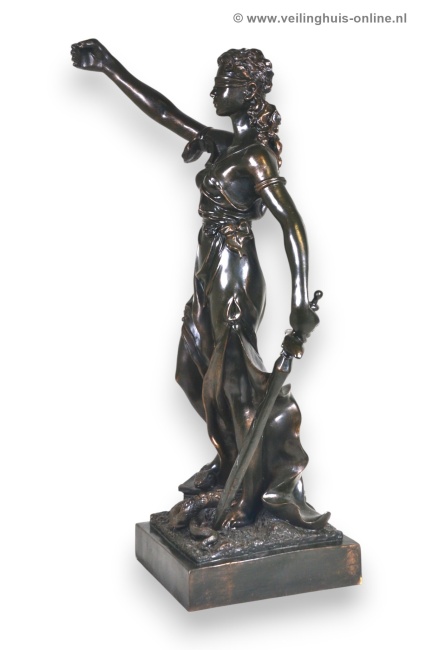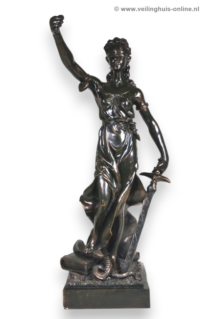| Bijzonderheden | Vrouwe Justitia is de Romeinse godin van het recht en het morele besef, gebaseerd op de Griekse godin Themis. Ze wordt wereldwijd gebruikt als het symbool voor de rechtspraak en is herkenbaar aan drie vaste kenmerken: De weegschaal: Symboliseert de zorgvuldige afweging van bewijzen en feiten.(Ontbreekt) Het zwaard: Staat voor de beslissingskracht en de macht om het vonnis uit te voeren. De blinddoek: Staat voor onpartijdigheid; er wordt rechtgesproken zonder aanzien des persoons (rijkdom, status of afkomst spelen geen rol). In Nederland vind je haar afbeelding vaak in of op rechtbanken. |