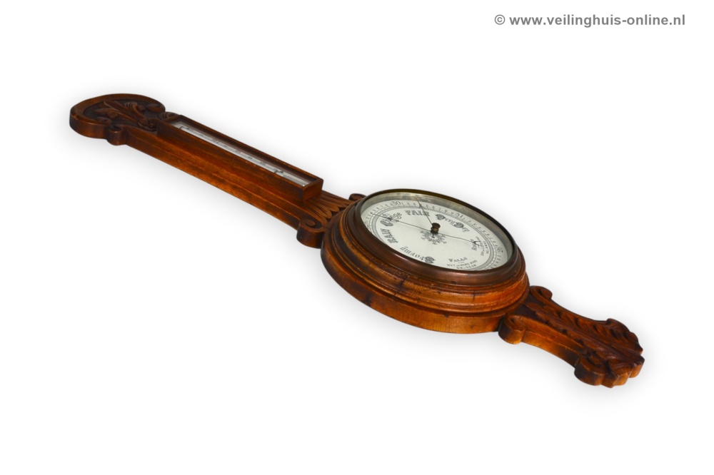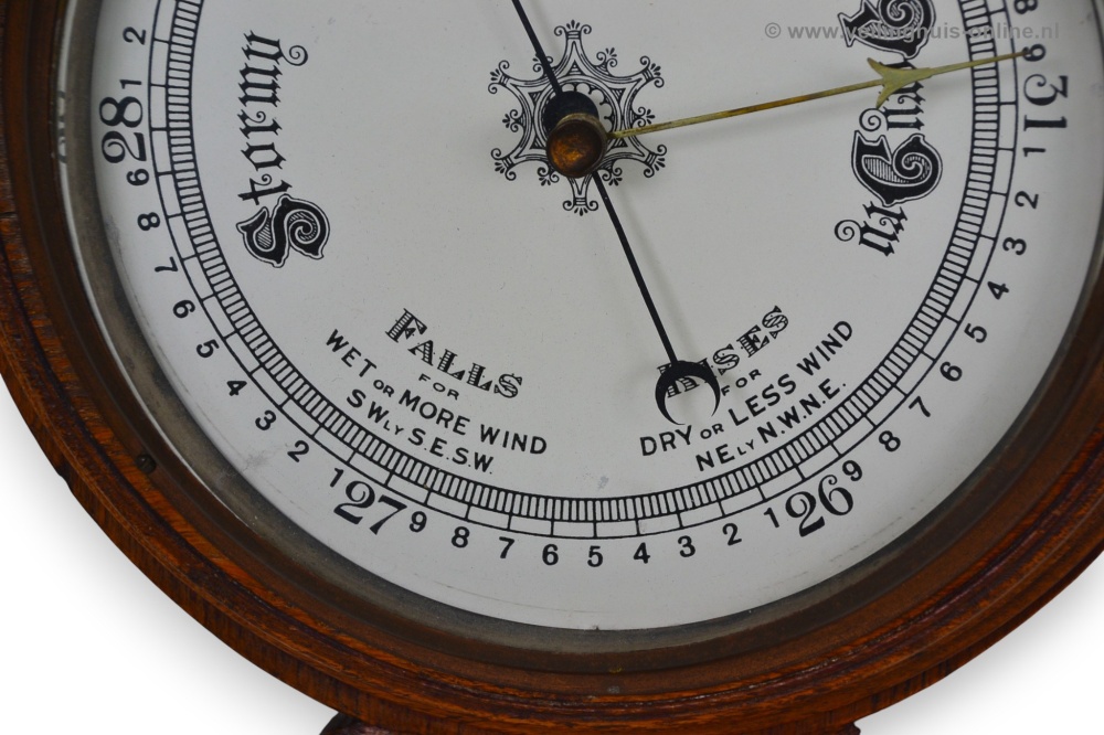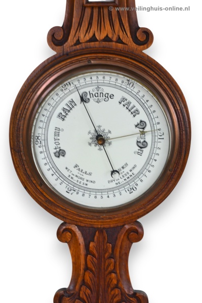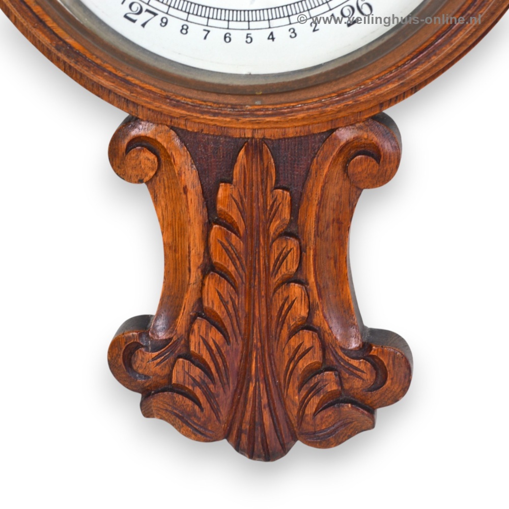 | Bijzonderheden | Mooie antieke Victoriaanse eikenhouten barometer Werking onbekend, glasplaat van de wijzerplaat zit los. |