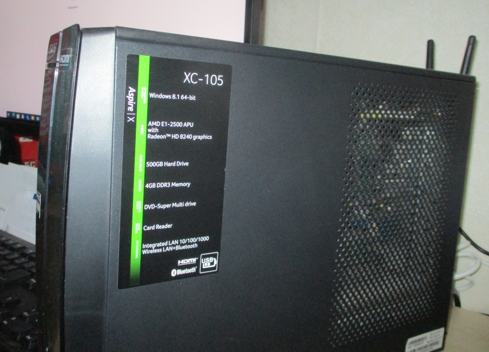 | Bijzonderheden | Acer Aspire XC-105 computer zonder monitor AMD EI 2500 APU 500 GB Hard Drive 4 GB DDR3 DVD Speler terug gezet naar fabriek instelling |