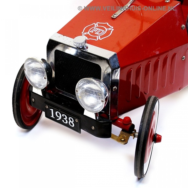 - De rode oldtimer is een replica van een brandweerauto uit 1938.
