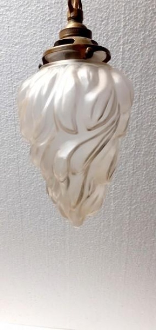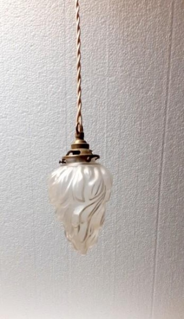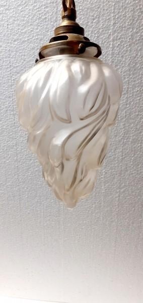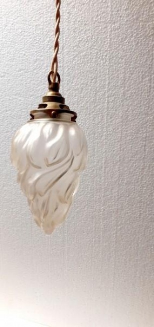 | Bijzonderheden | Deze antieke plafondlamp dateert uit de jaren 20 met sierlijk gevormde glazen kap. Eenvoudig en elegant. lampenkap rok doorsnee 8 cm en totale hoogte 60 cm Wordt goed verpakt en aangetekend verzonden met track en trace |