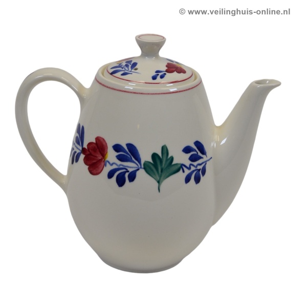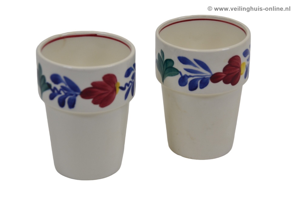 | Bijzonderheden | Melkkan - Van oor tot tuit 18 cm - Hoogte 20 cm Koffiepot - Van tuit tot oor 21 cm - Hoogte 19 cm Melkkannetje - Van tuit tot oor 17 cm - Hoogte 6 cm 2x Melkbekers - Hoogte 10 cm Geschatte marktwaarde € 60,- Richtprijs minimaal bedrag ligt tussen € 9,- en € 16,- |