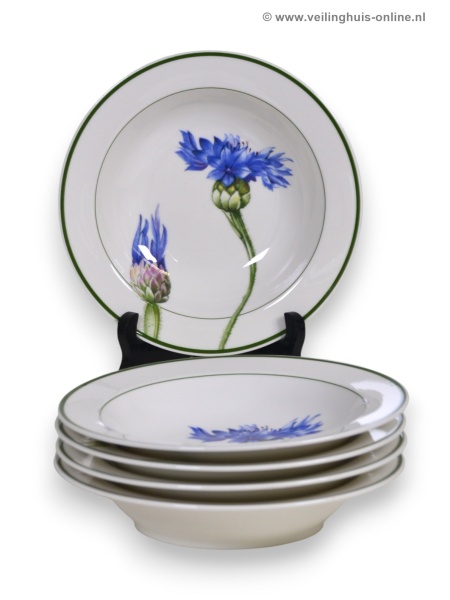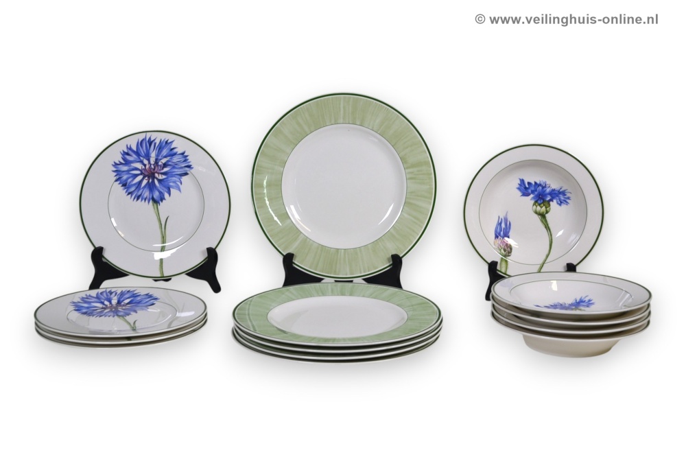 | Bijzonderheden | 19 Serviesonderdelen van het Flora servies van Villeroy & Boch 5 Schaaltjes Ø 14 cm - Hoogte 8 cm 5 Diepe borden Ø 20 cm 5 Dinerborden Ø 27 cm 4 Ontbijtborden Ø 21,5 cm Geschatte marktwaarde € 345,- Richtprijs minimaal bedrag ligt tussen € 84,- en € 96,- |