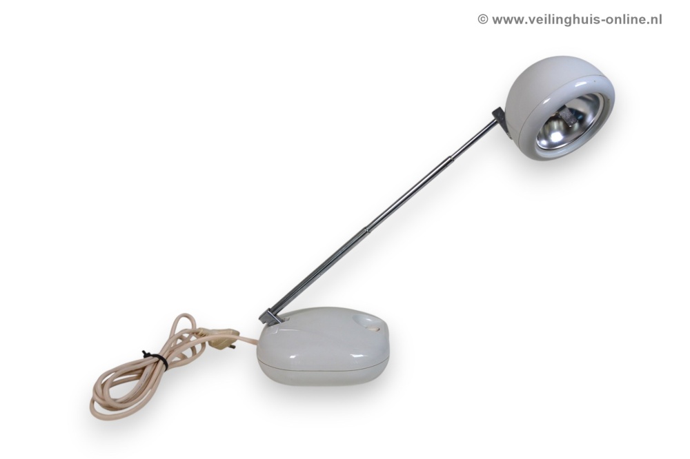 | Bijzonderheden | Bureaulamp van Tensor, voorzien van een verstelbare koepellamp die kan draaien en uitschuift van ongeveer 19 cm tot 38 cm hoog. Aan/uit-schakelaar. Voet 13 x 13 cm Geschatte marktwaarde € 75,- Richtprijs minimaal bedrag ligt tussen € 11,- en € 21,- |
