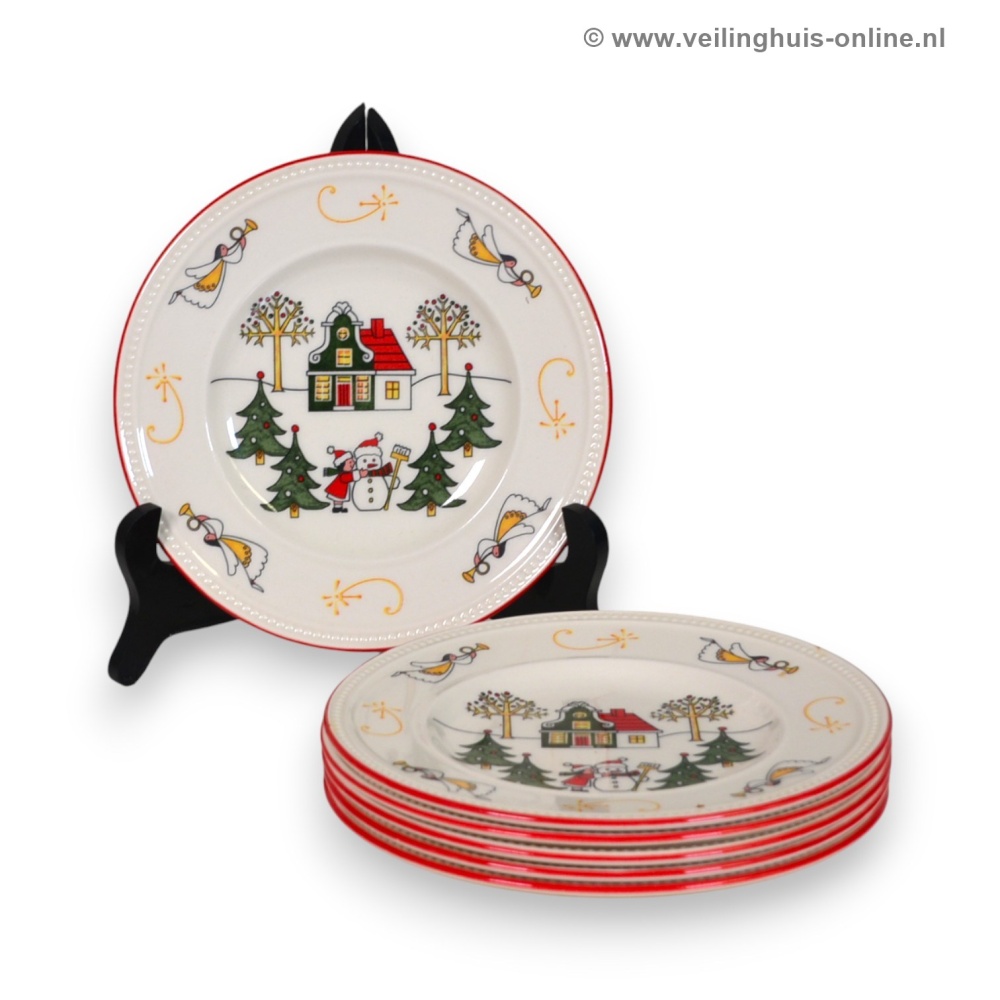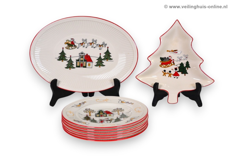 | Bijzonderheden | Serviesonderdelen Wedgwood Windsor Christmas: 6x bordjes Ø 18,5 cm Zuurschaal 26,5 x 18,5 cm Kerstboom schaaltje Mason's Christmas Village nr 29 - Afmeting 19 x 20,5 cm Geschatte marktwaarde € 80,- Richtprijs minimaal bedrag ligt tussen € 12,- en € 24,- |