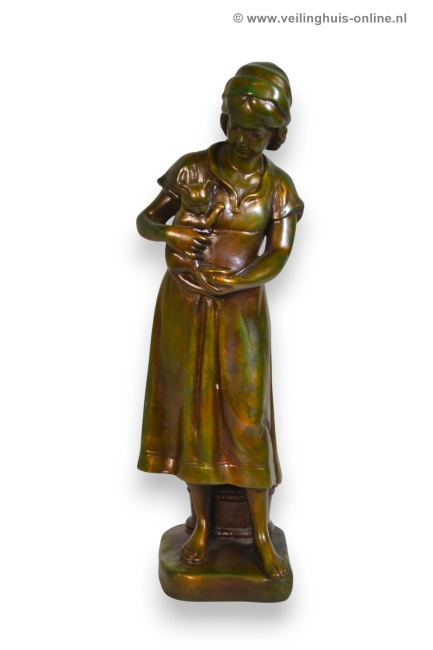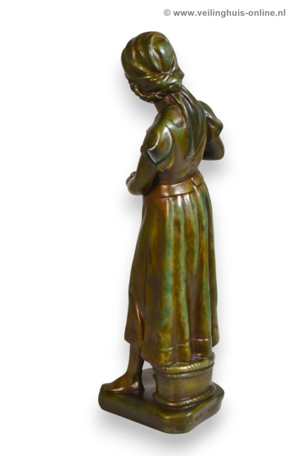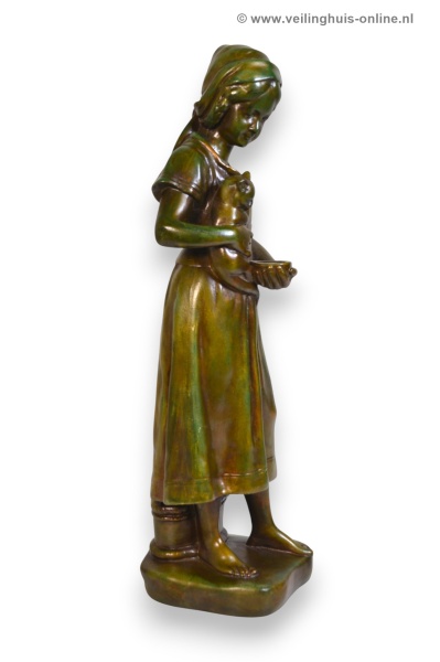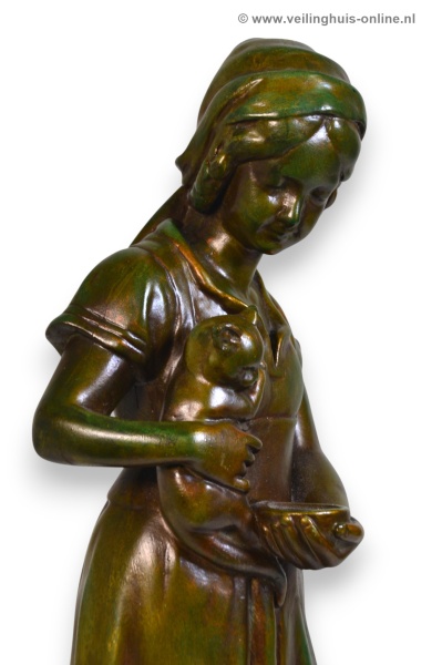| Bijzonderheden | Het beeld heeft een fraai lijnenspel, is gedetailleerd uitgevoerd en heeft een bijzonder mooie kleur groen met goudkleurige accenten.