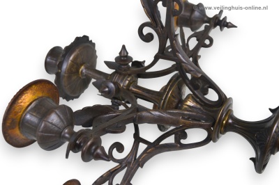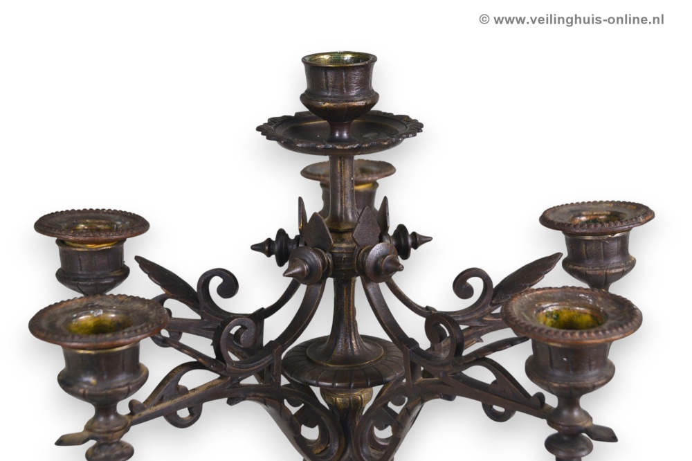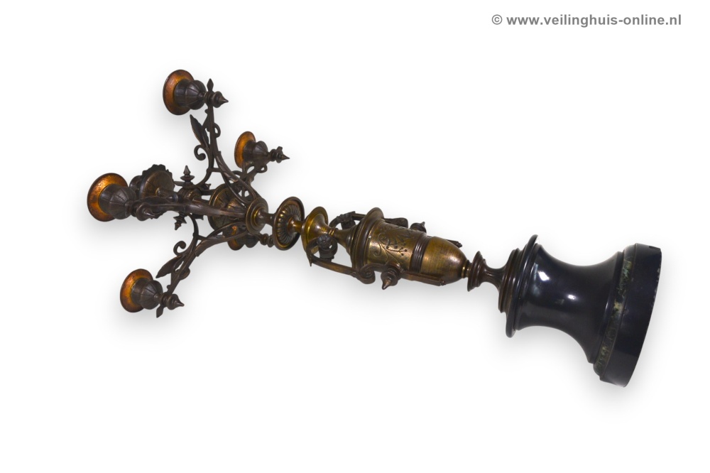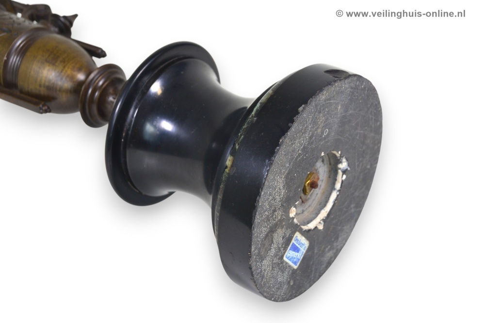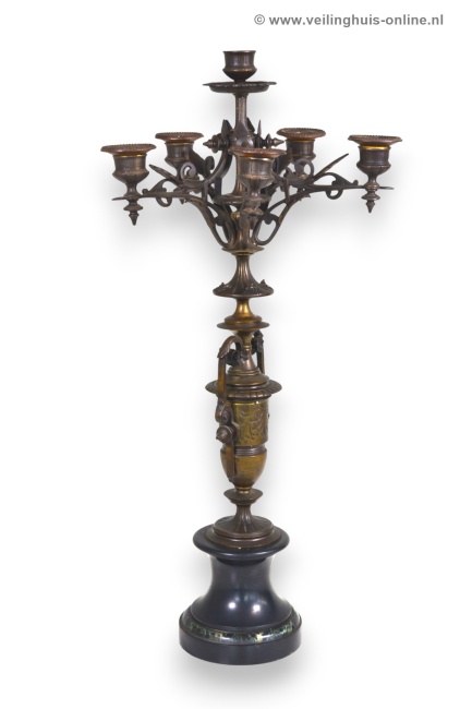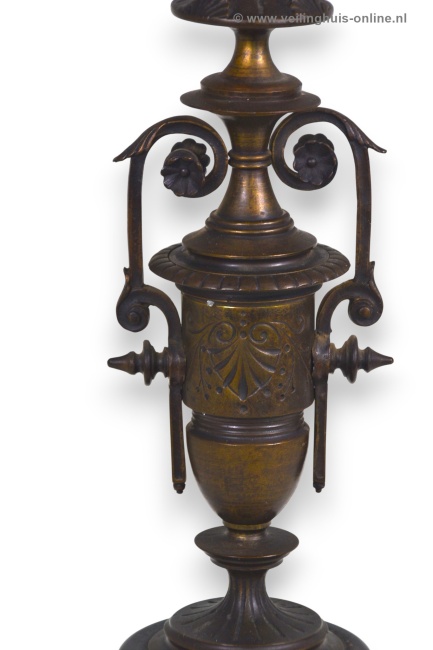 | Bijzonderheden | Deze bronzen antieke Franse Candelabra heeft een vaasvormige stam met bladeren in bas-Reliëf op een marmeren voet. Foto's maken deel uit van de omschrijving Geschatte marktwaarde € 245,- Richtprijs minimaal bedrag ligt tussen € 41,- en € 64,- |