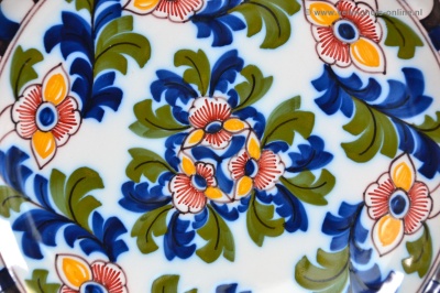 | Bijzonderheden | Het bord heeft een decor met bloemen en bladeren (Naam op de foto verwijderd ivm privacy) |