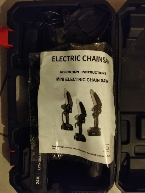 | Bijzonderheden | kleine kettingzaag met accu, nog nieuw in de doos |