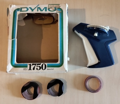 | Bijzonderheden | Vintage Dymo lettertang met 3 rolletjes erbij (twee rode en een zwarte), doet het nog steeds.